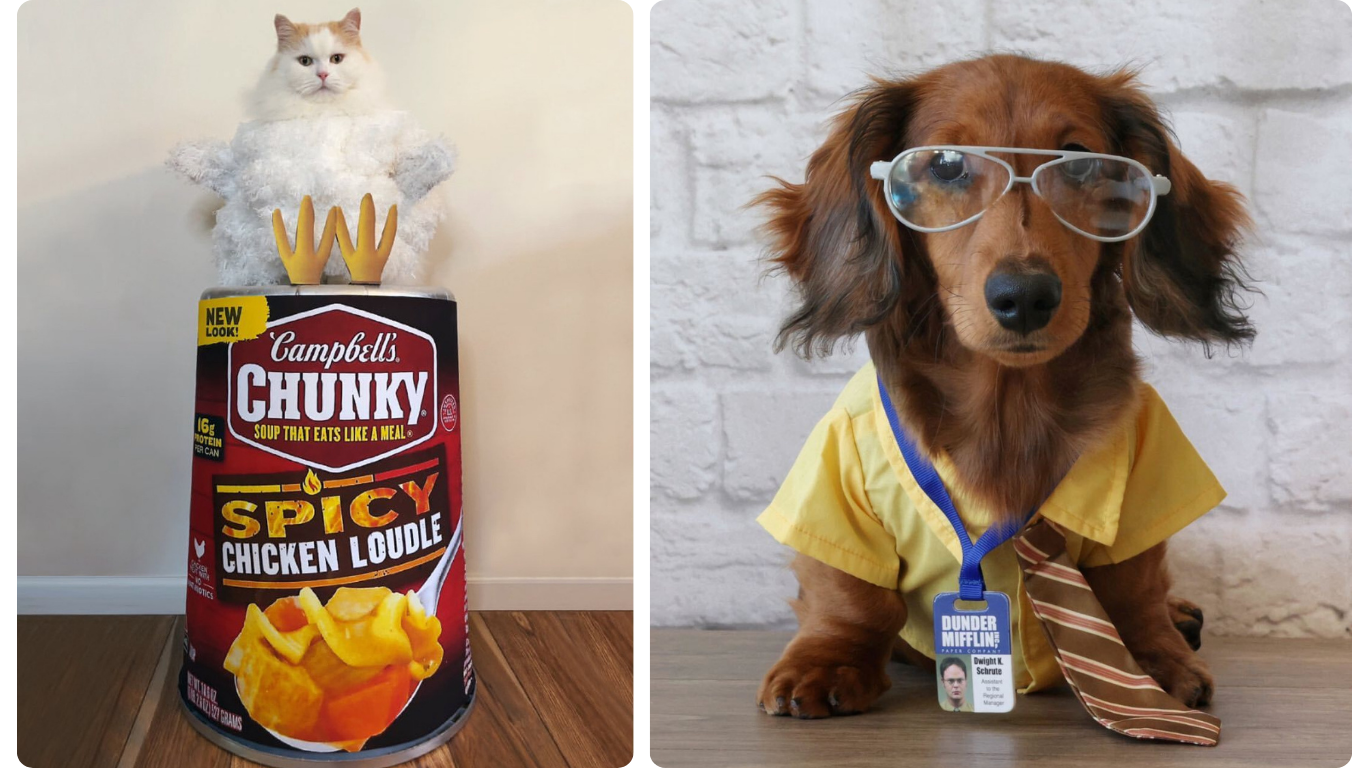 If laughter is your love language, follow in @sophielovestuna and @peace.love.doxies paw-steps and try a funny Halloween costume! A silly outfit is guaranteed to get a reaction, both in person and on social media. You don’t need to DIY these either. There are tons of funny pet costumes available online that make it easy to dress up your furry friend.