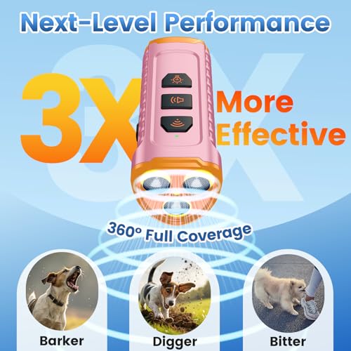 Specification: Dog Bark Deterrent Device 3X Anti Barking Device for Dogs, 5 Modes Stop Neighbors Dog Barks No More Safe for All Dogs 50FT Bark Control Indoor Outdoor with Flashlight,Dog Training Device