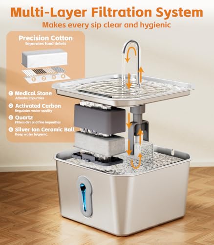 Specification: UPAWPIA 4L/135oz Large Cat Water Fountain Stainless Steel Pet Water Fountain for Cats Quiet Indoor Pets Dog Small Animal Automatic Dog Water Dispenser for Drinking Watering Supplies